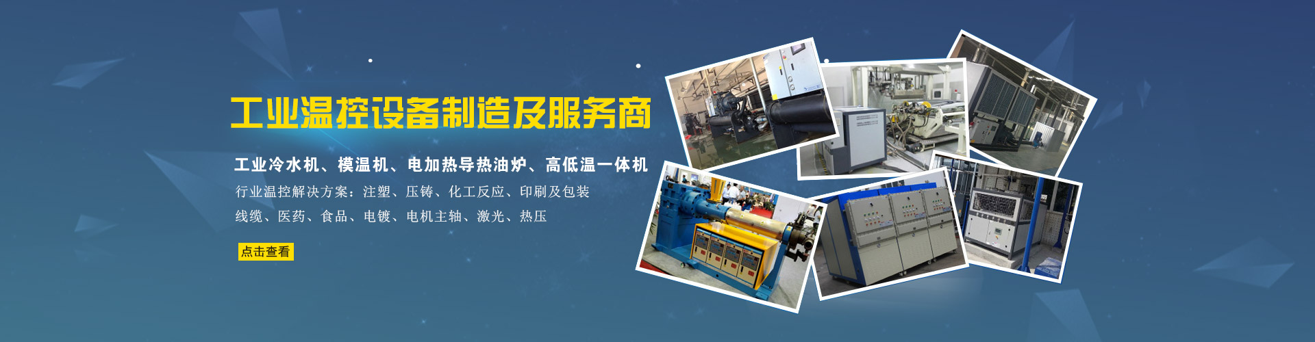 我們的產(chǎn)品主要包括:冷熱一體機、油循環(huán)溫度控制機、水循環(huán)溫度控制機、工業(yè)冷水機、冷油機、螺桿式冷水機、熱泵機組、蒸發(fā)式冷凝機組。針對不同行業(yè)的專業(yè)溫度控制需求,公司還研發(fā)出了行業(yè)專用溫控設(shè)備,如變速箱檢測專用冷熱一體機、橡塑專用水溫機、壓鑄專用油溫機、防爆模溫機、液壓系統(tǒng)專用冷油機等。